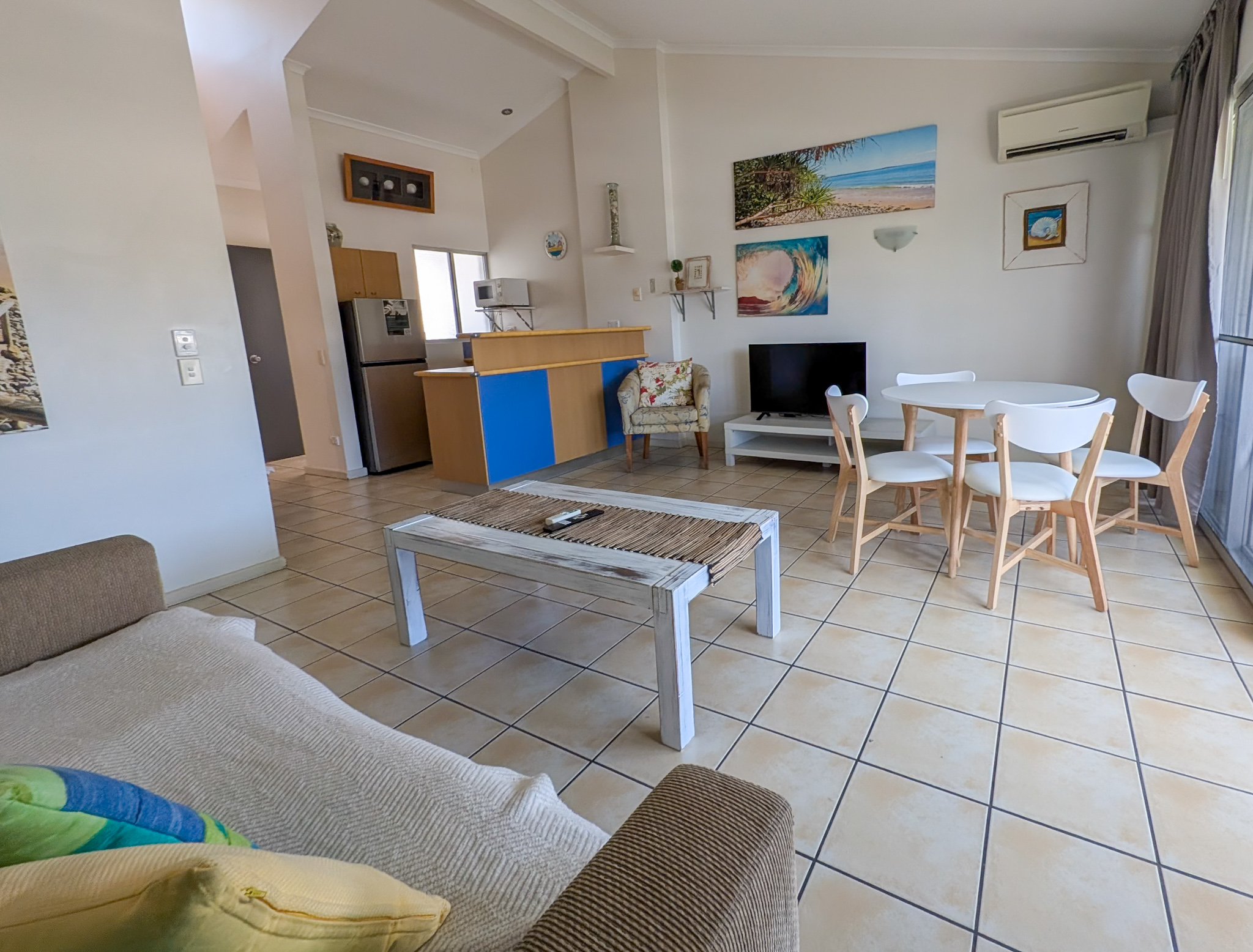 * The Work-Life Balance: The open-plan living and dining area is served by high-speed Wi-Fi and a Smart TV, making it the perfect base for a working holiday where productivity meets paradise.